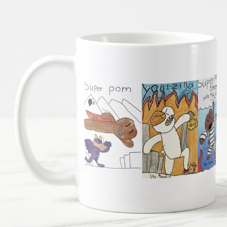 Sip like a hero! Super Pom’s wild comic mug is bursting with monsters, mayhem, and laugh-out-loud POWs & BOOMs.